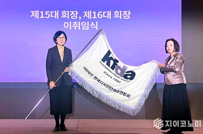 한국디자인단체총연합회 이취임식. (왼쪽: 백진경 신임 회장 오른쪽: 김현선 전임 회장)
