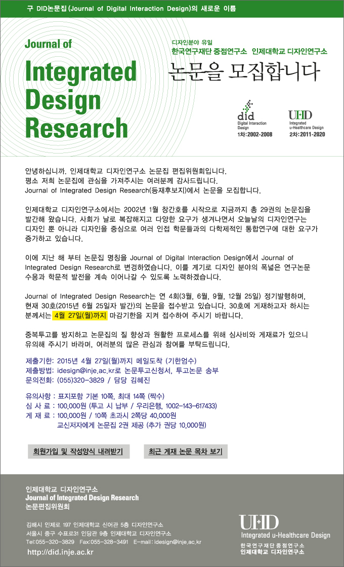 [논문접수안내] Journal of Integrated Design Research (vol.14 no.2 - 통권 30호)